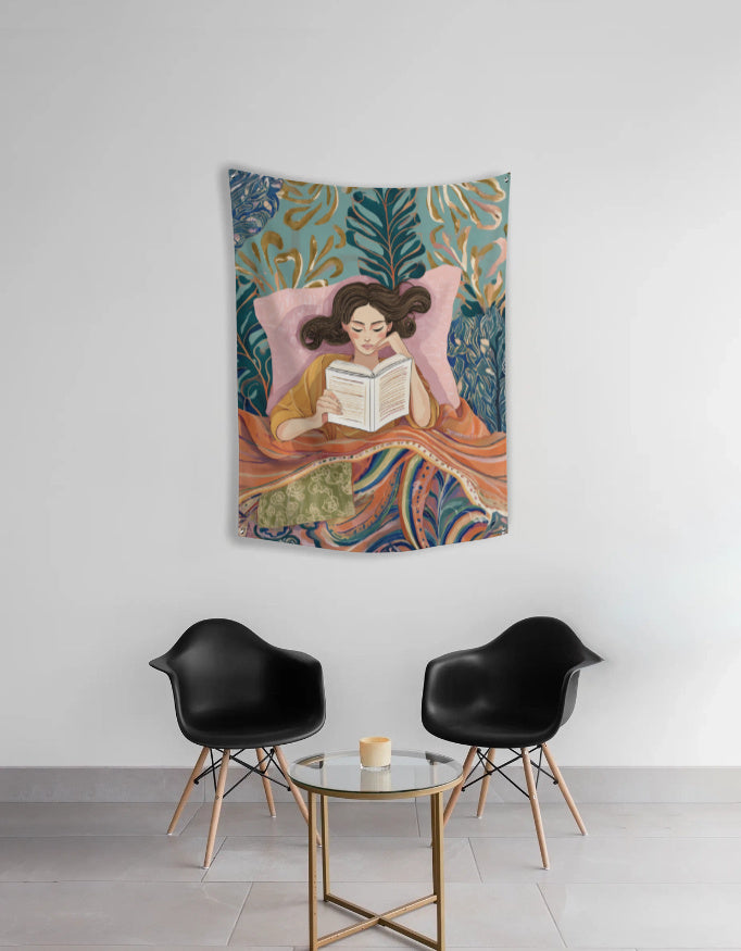 Each piece is printed in India on soft fabric and works as cloth wall hanging decor or a bohemian tapestry wall hanging – one of the easiest tapestries to hang on wall spaces where you can’t paint or drill much.