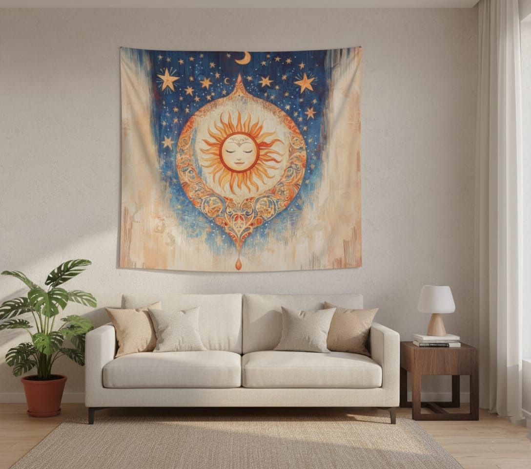 Enhance your living space with our Eclectic Bohemian Tapestries, designed to bring a touch of boho-chic elegance to any room. These tapestries are super soft to the touch and lightweight, making them perfect for creating a cozy and inviting atmosphere.