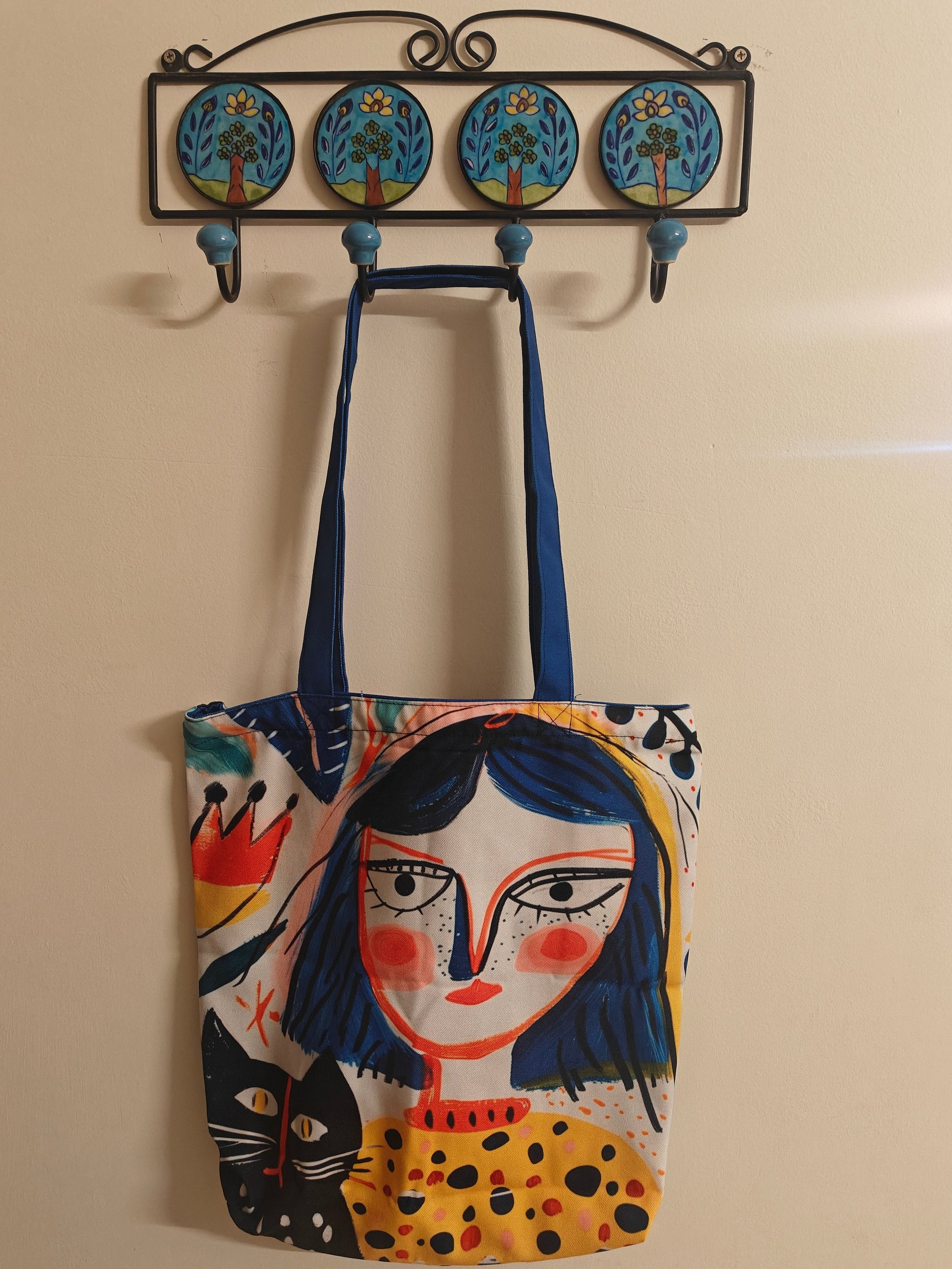 Cat & Me Artistic Both Side Printed Tote Bag With Zipper