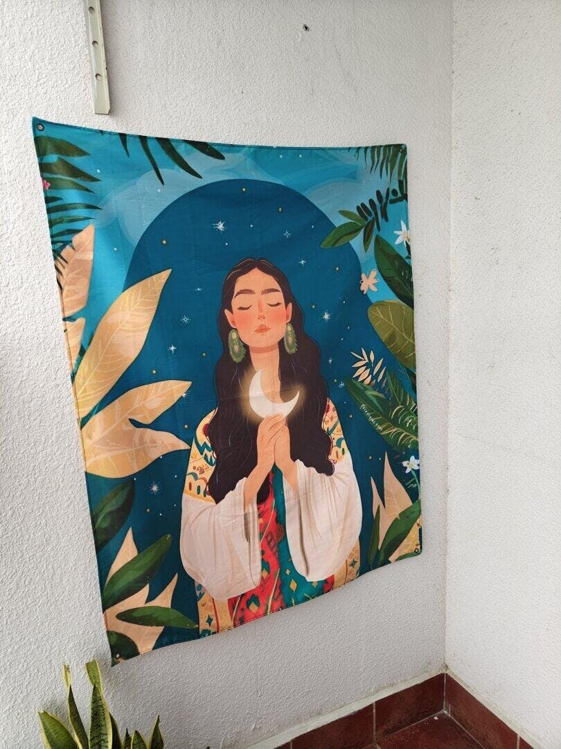 Frida as Buddha Bohemian Wall Art Tapestry