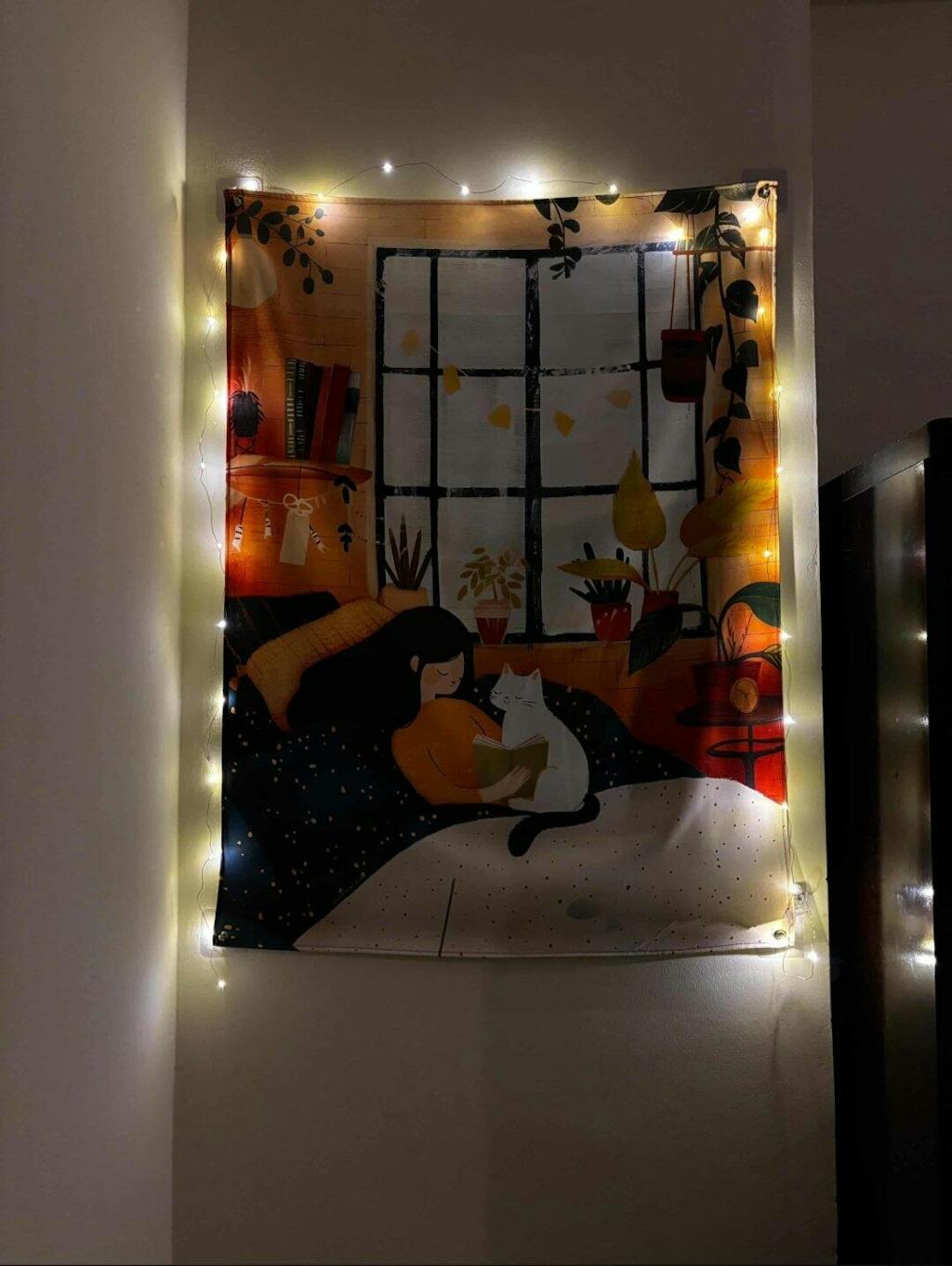 Girl & Cat Reading Corner Tapestry