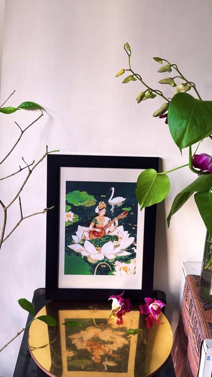 Bring Wisdom & Serenity Home with Our Saraswati Wall Art
