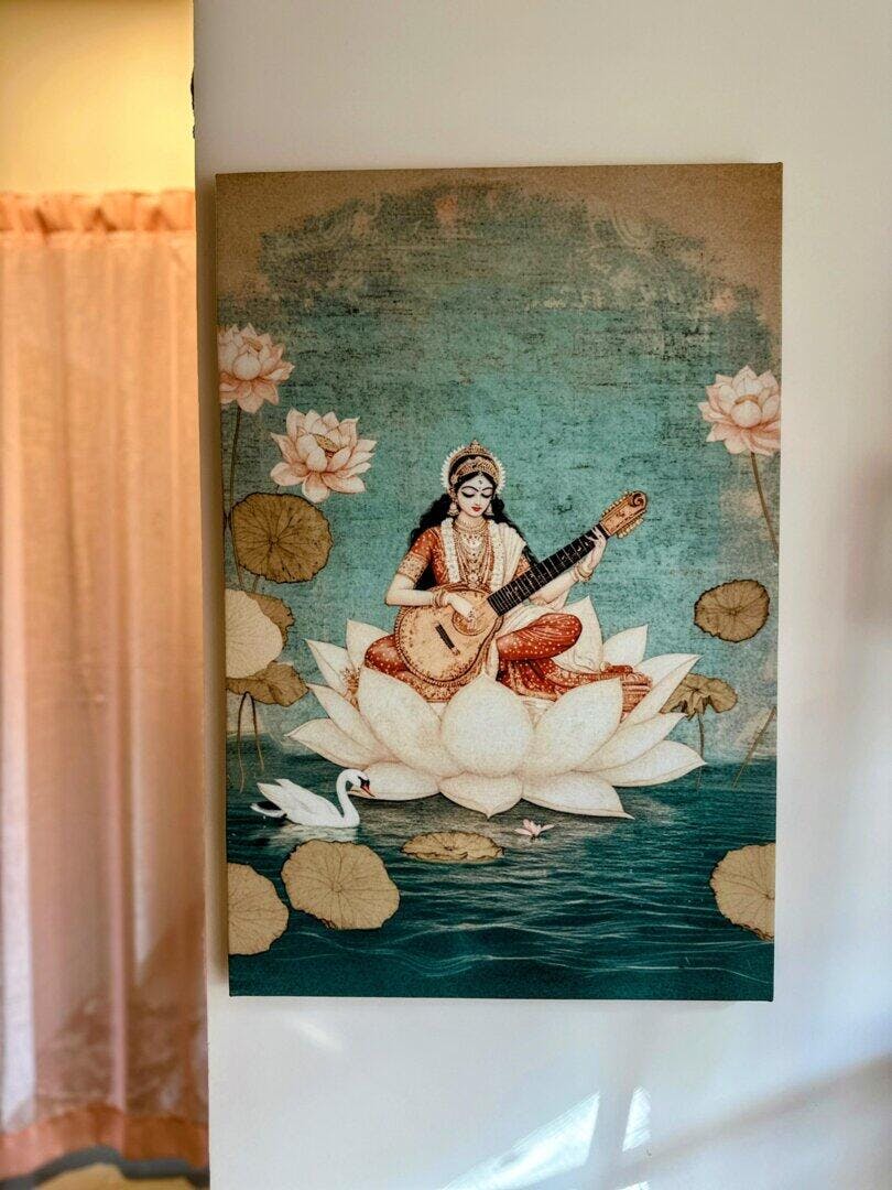 Celebrate your power with our Wall Art, a striking visual tribute to Goddess Saraswati. Featuring bold, inspiring imagery, this piece is a powerful statement in any space, designed to motivate and uplift every viewer. Perfect for home or office, it adds a touch of elegance and inspiration.